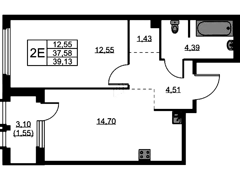 • Площадь39,13 м2