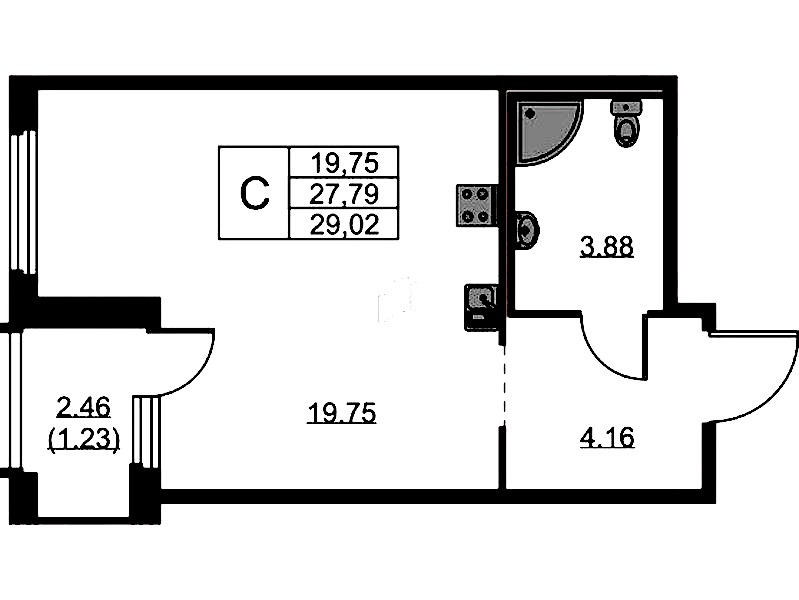 - Площадь29,02 м2
