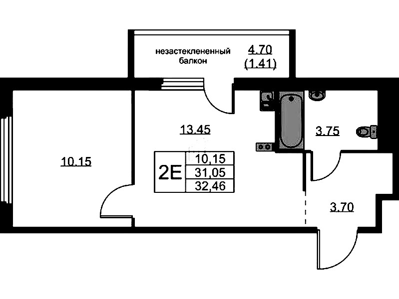 Однокомнатная квартира на 15-ом этаже 32,46 кв.м