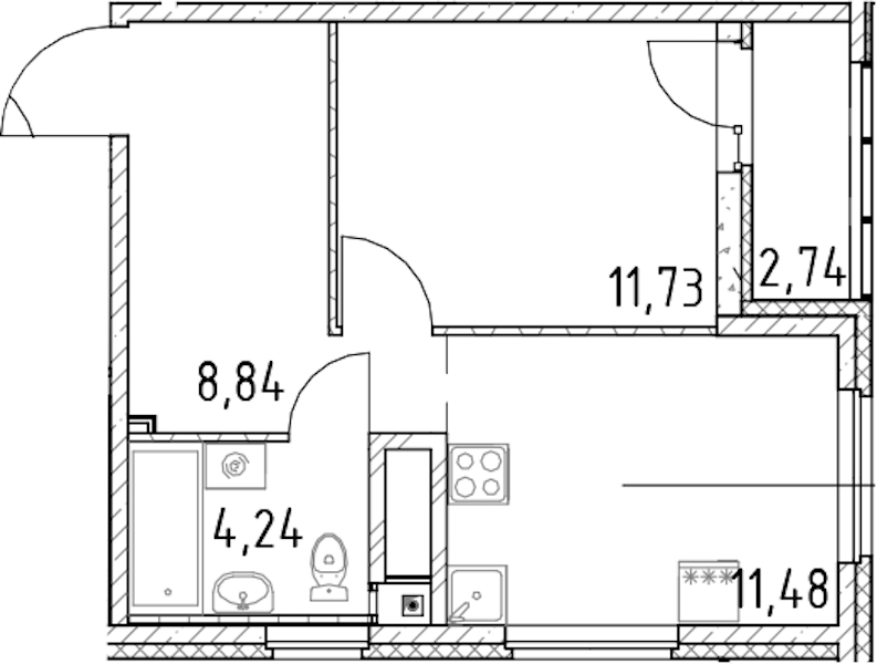 - Площадь кухни11,48 м2