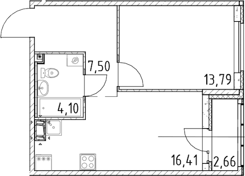 - Площадь кухни16,41 м2