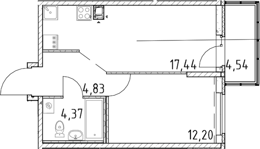 - Площадь кухни17,44 м2