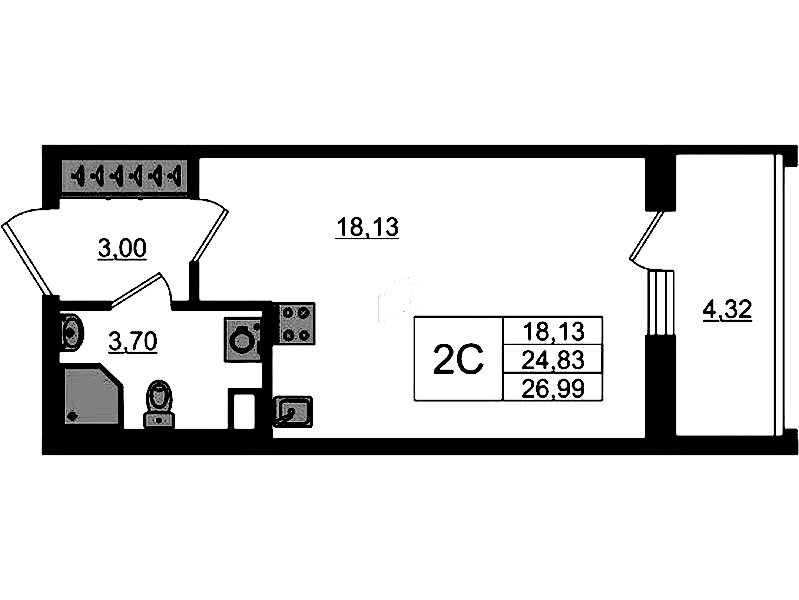 Квартира-студия на 2-ом этаже 24,83 кв.м