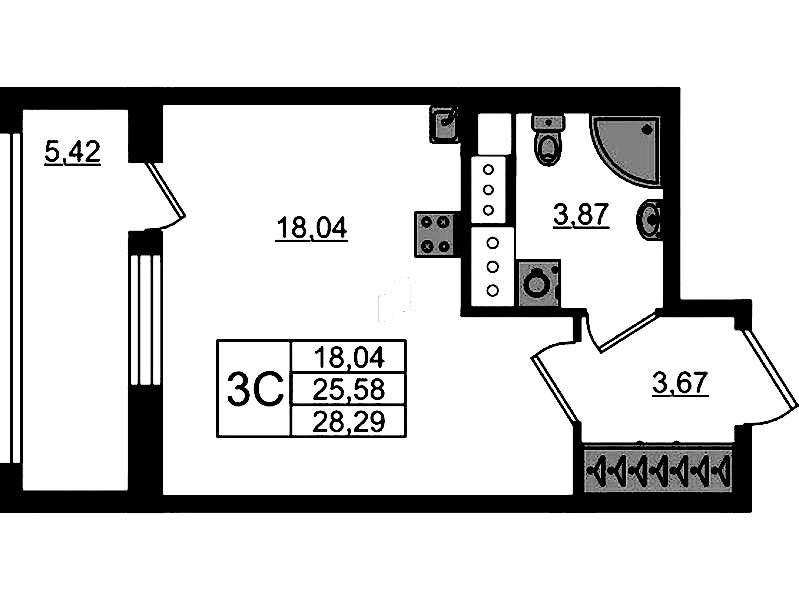 Квартира-студия на 21-ом этаже 25,58 кв.м