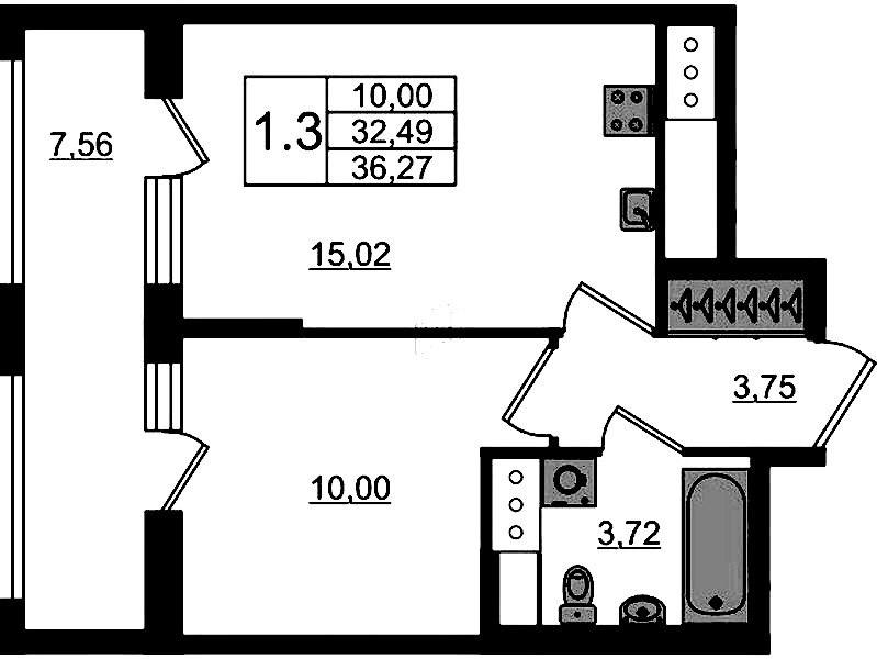 - Площадь32,49 м2