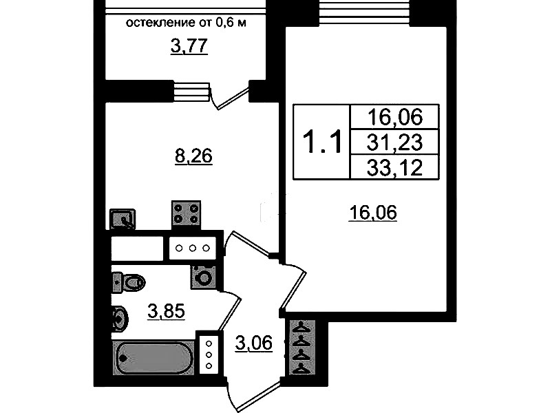- Площадь31,23 м2