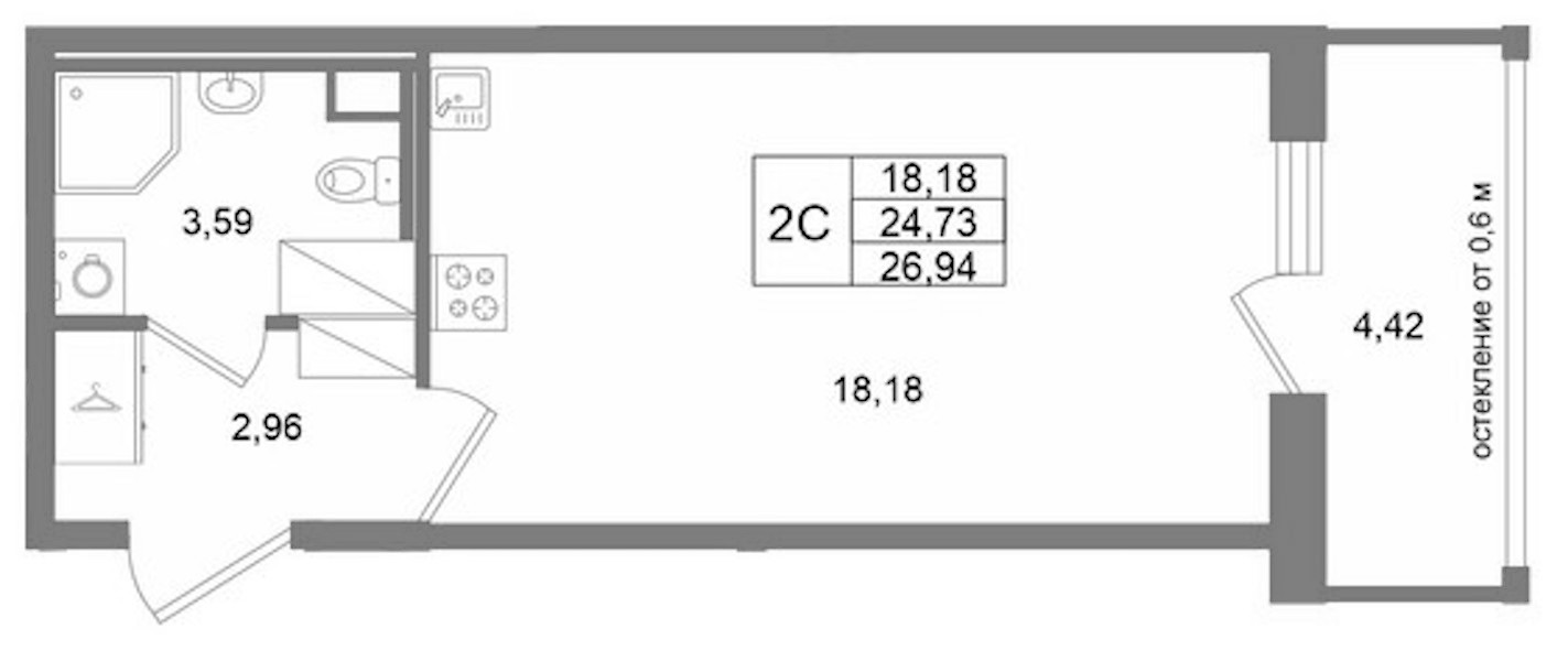 - Площадь24,73 м2