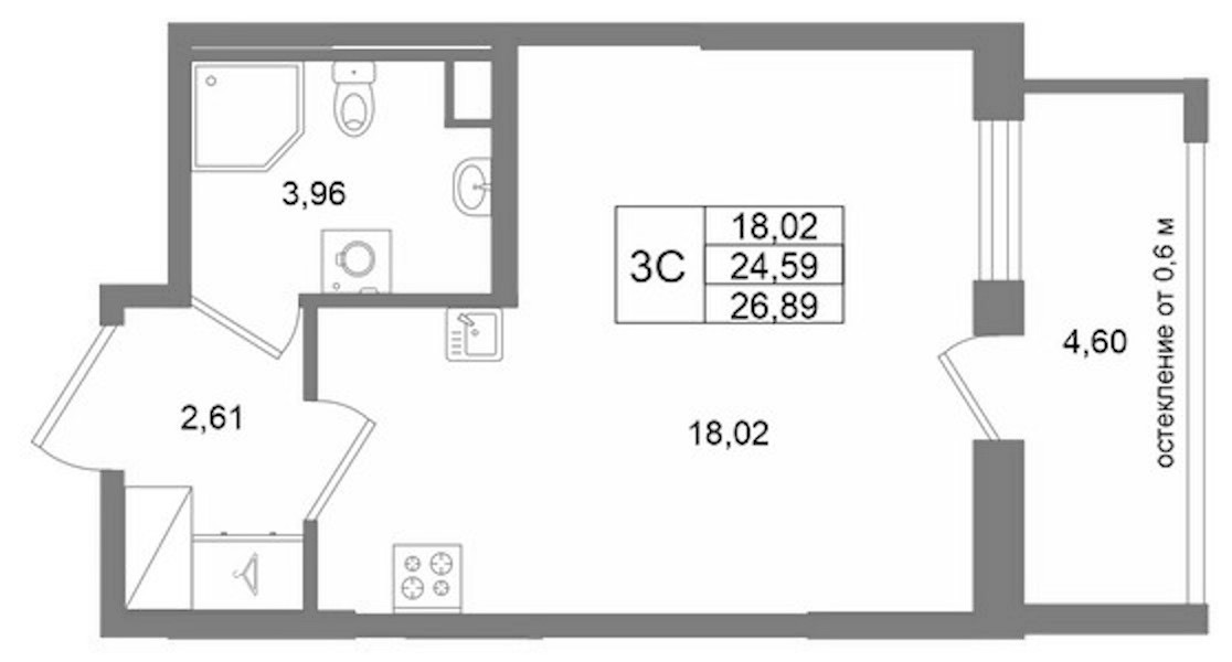- Площадь24,59 м2