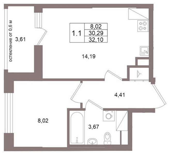 - Площадь30,29 м2
