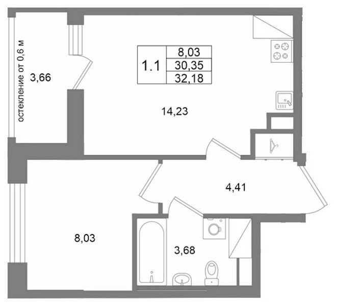 - Площадь30,35 м2