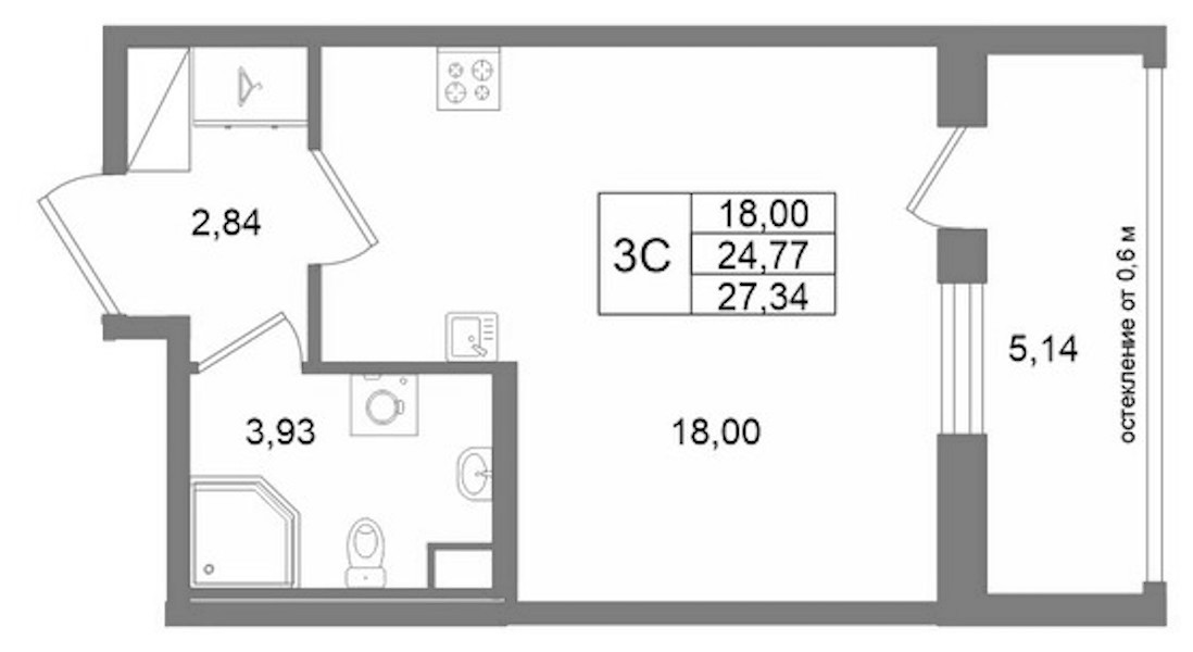 - Площадь24,77 м2