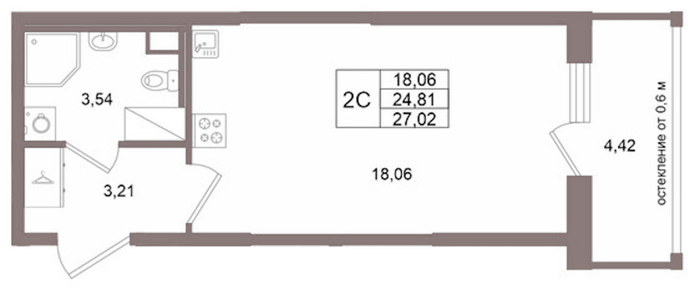 - Площадь24,81 м2