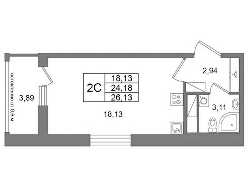 - Площадь24,18 м2