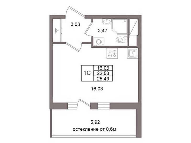 - Площадь22,53 м2