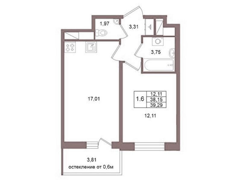 - Площадь38,15 м2