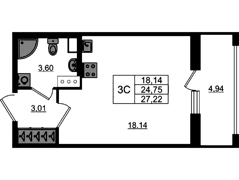 - Площадь24,75 м2