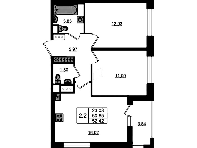 - Площадь50,65 м2