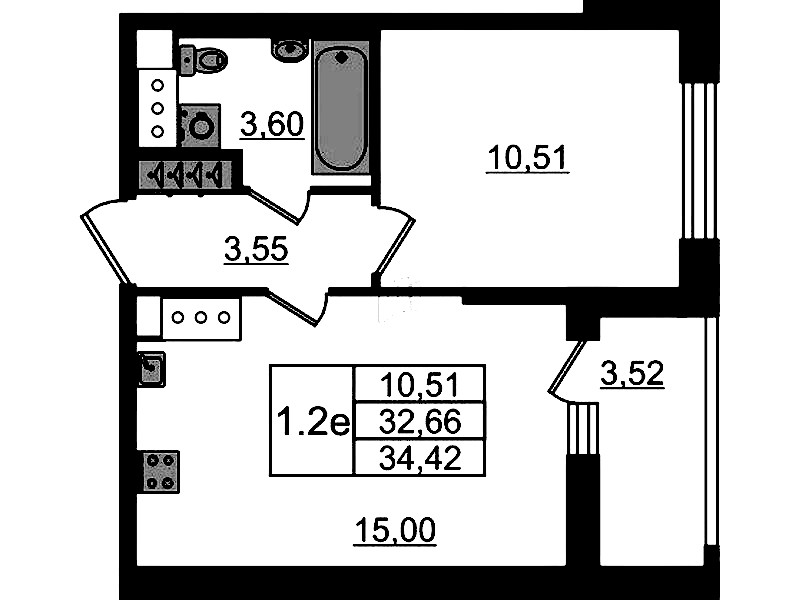 Однокомнатная квартира на 13-ом этаже 32,66 кв.м
