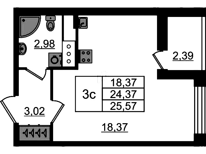 Квартира-студия на 10-ом этаже 24,37 кв.м