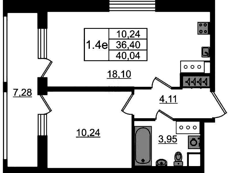 - Площадь36,4 м2