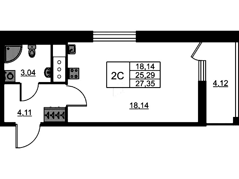 - Площадь25,29 м2
