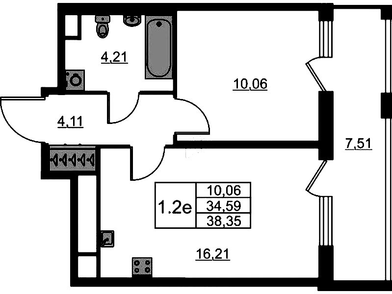 • Площадь34,59 м2