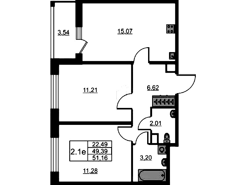 - Площадь49,39 м2