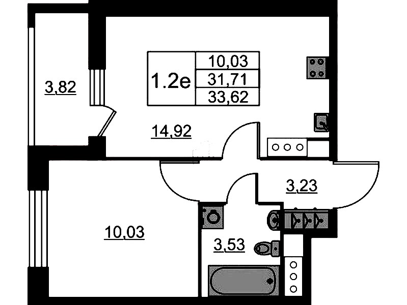 - Площадь кухни14,92 м2