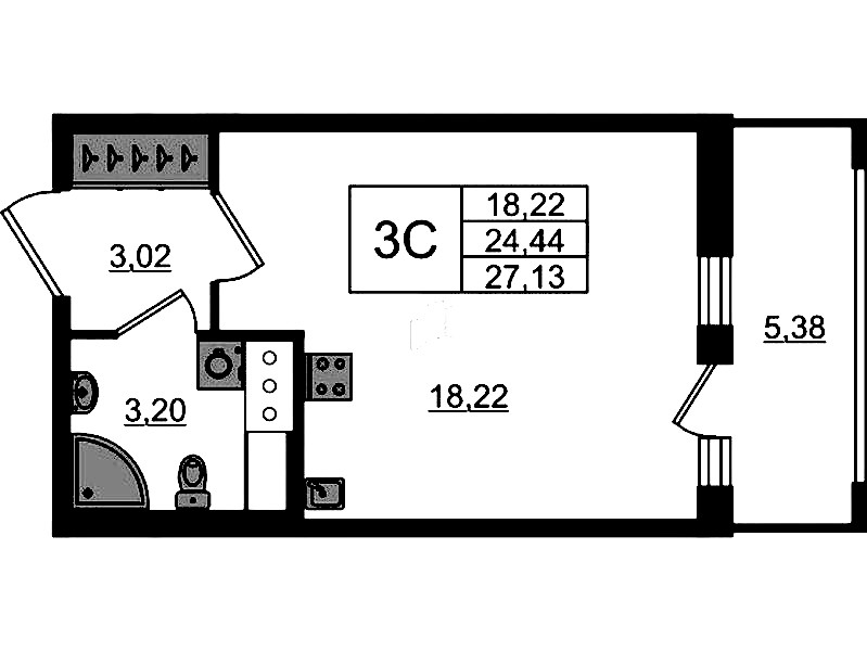 - Площадь24,44 м2