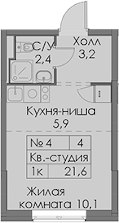 Квартира-студия на 1-ом этаже 21,6 кв.м