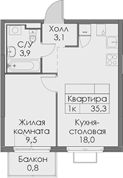 - Площадь35,3 м2