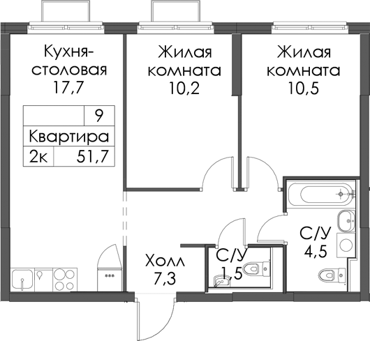 - Площадь51,7 м2