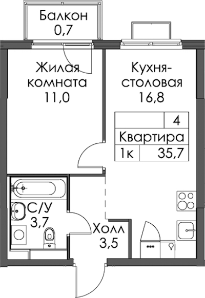 - Площадь35,7 м2