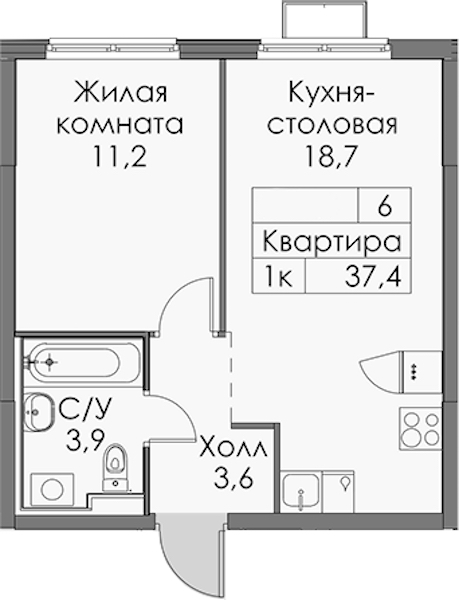 • Площадь37,4 м2