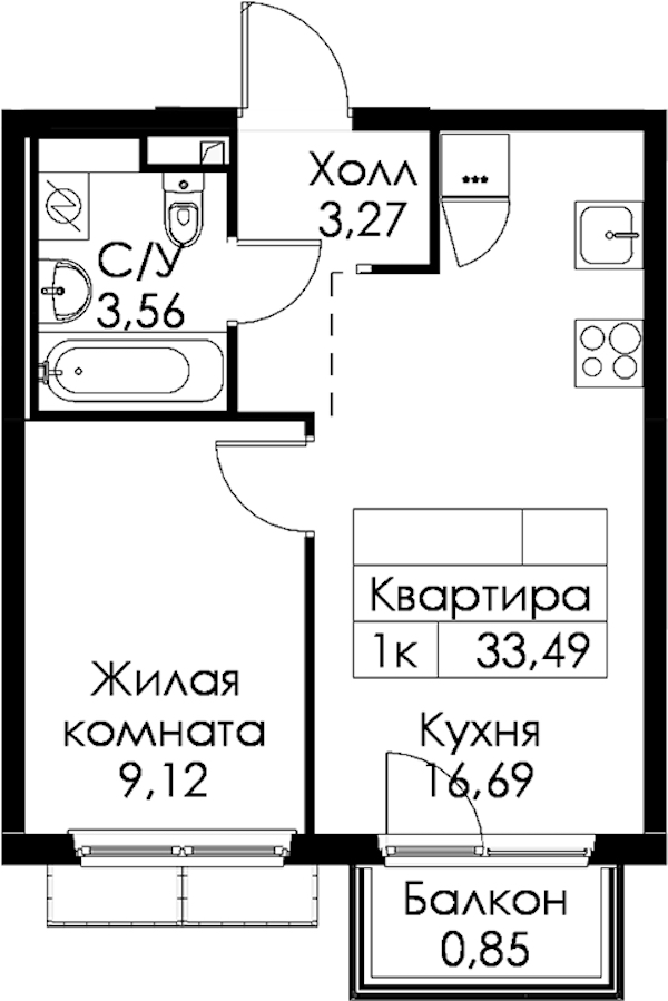 - Площадь33,49 м2