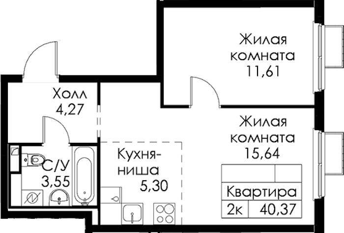 • Площадь40,37 м2