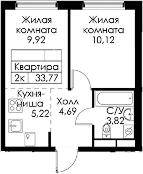- Площадь33,77 м2