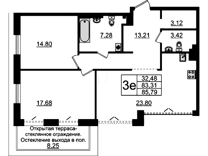 Двухкомнатная квартира на 5-ом этаже 83,31 кв.м