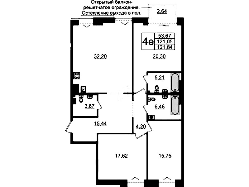 Трёхкомнатная квартира на 6-ом этаже 121,05 кв.м