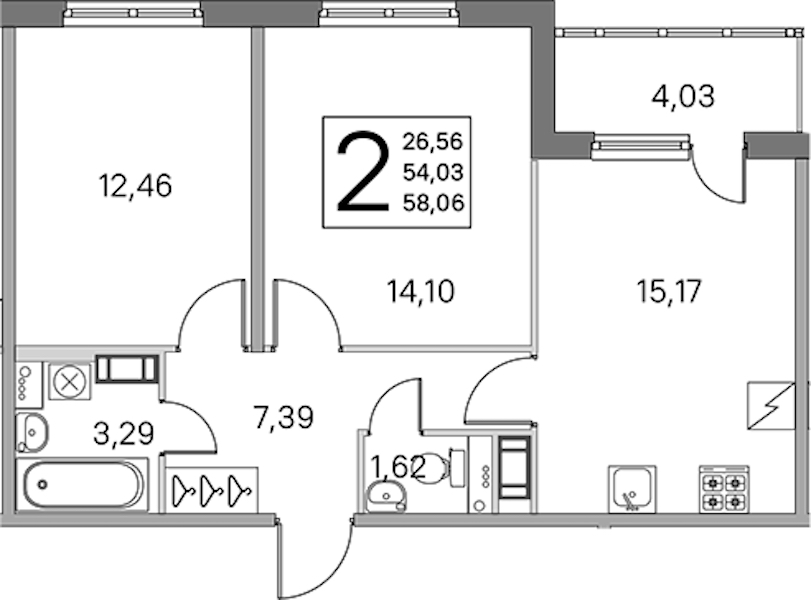 - Площадь54,03 м2