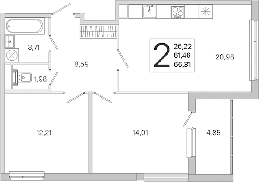 - Площадь61,46 м2