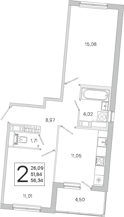 - Площадь51,84 м2