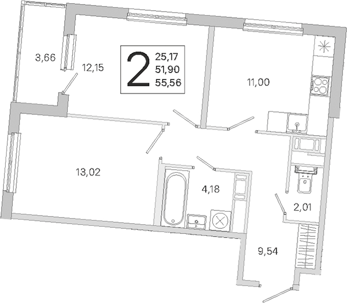 • Площадь51,9 м2