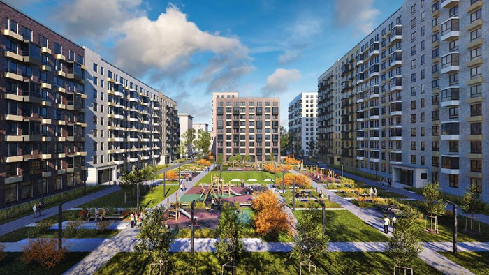 Между домами появятся дворы-парки без машин, с зелёным газонами и взрослыми деревьями, детскими площадками и зонами для отдыха. Первые этажи займут магазины, кофейни, аптеки, салоны красоты и многое другое. На подземных этажах разместятся кладовые, в них можно хранить свои вещи. Для автомобилистов за пределами дворов появятся надземные паркинги, а для молодых родителей — собственные детский сад и школа.