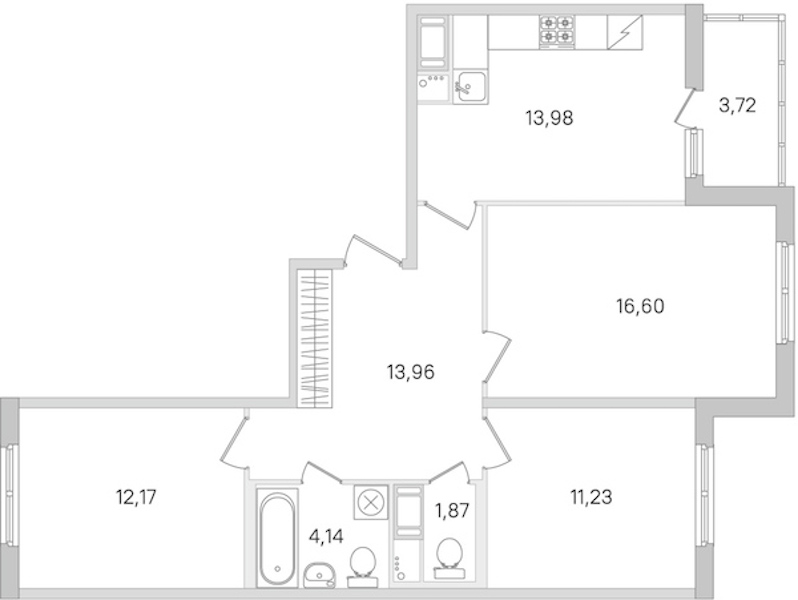 Трёхкомнатная квартира на 6-ом этаже 77,67 кв.м