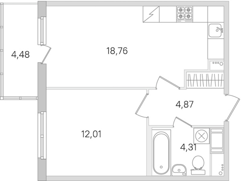 - Площадь кухни18,76 м2