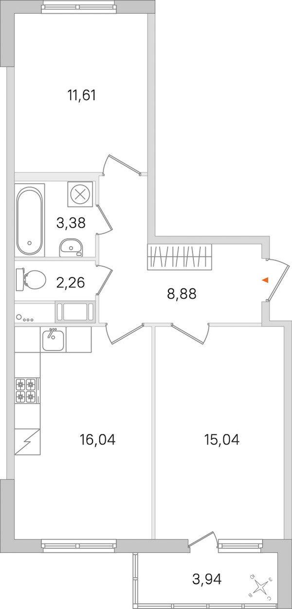 - Площадь кухни16,04 м2