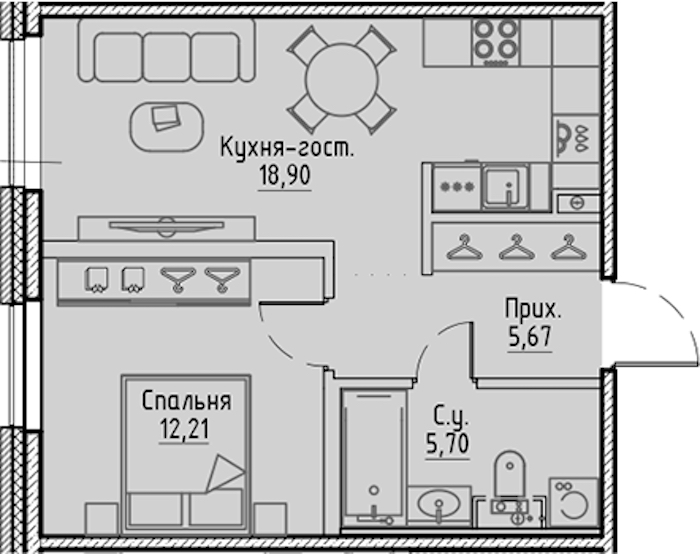 • Площадь кухни18,9 м2