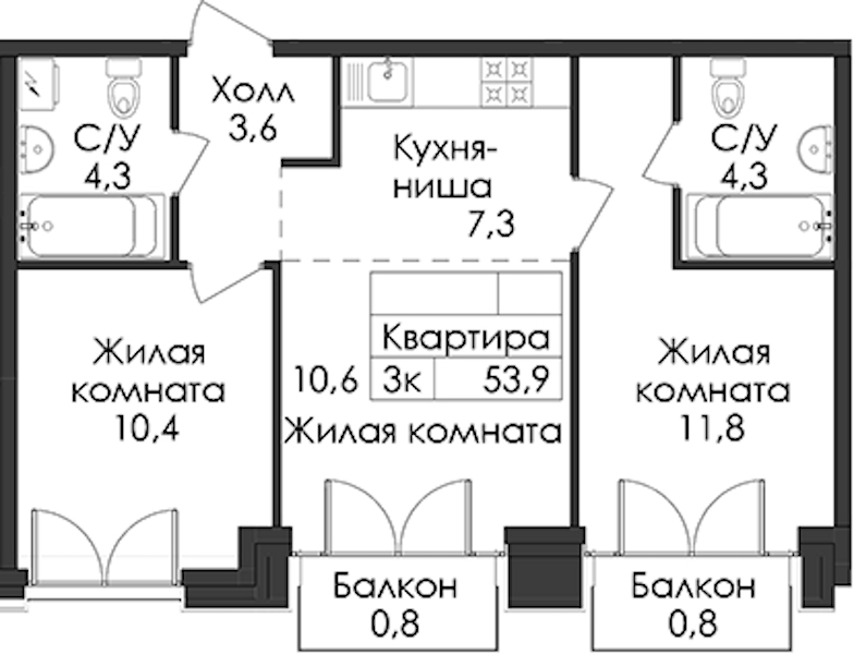 - Площадь53,9 м2