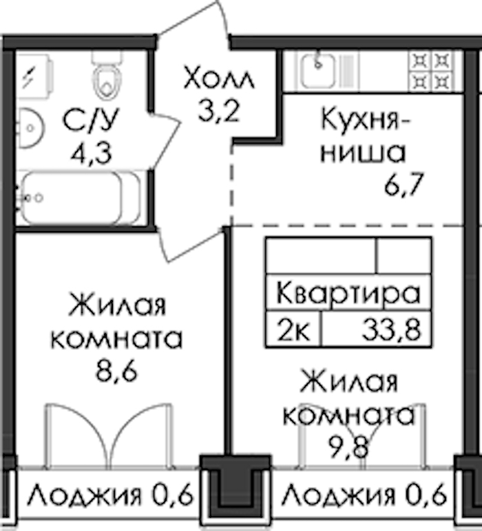 - Площадь33,8 м2